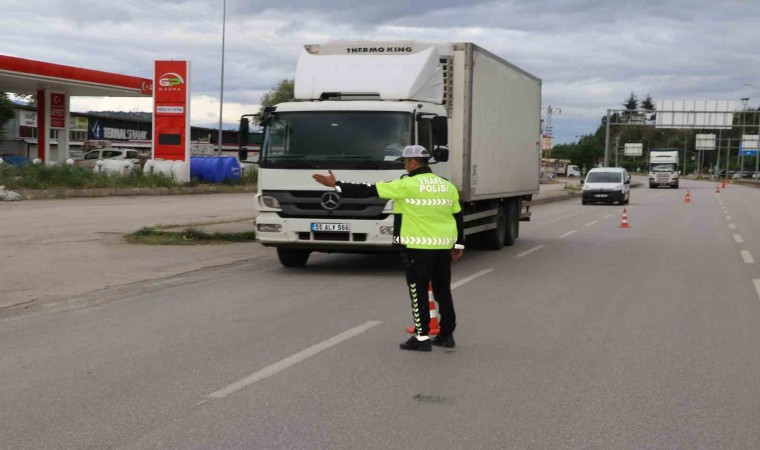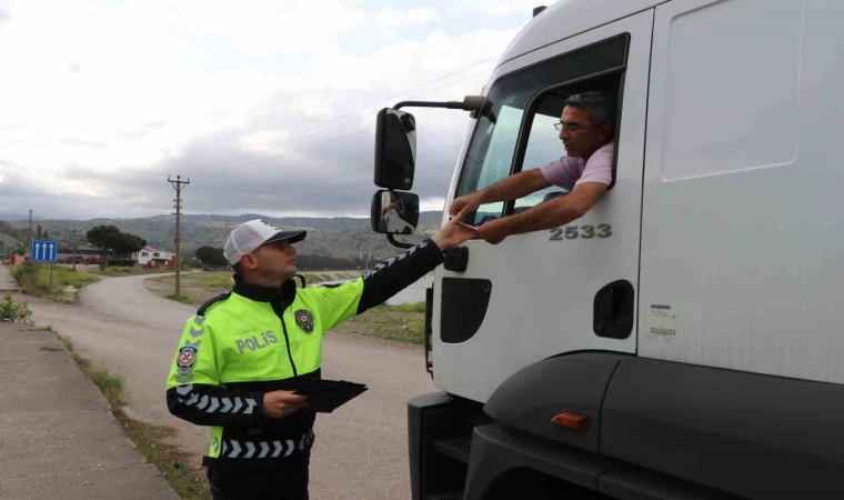 Amasya’nın Taşova ilçesinde polis yük taşıyan araçları denetledi.