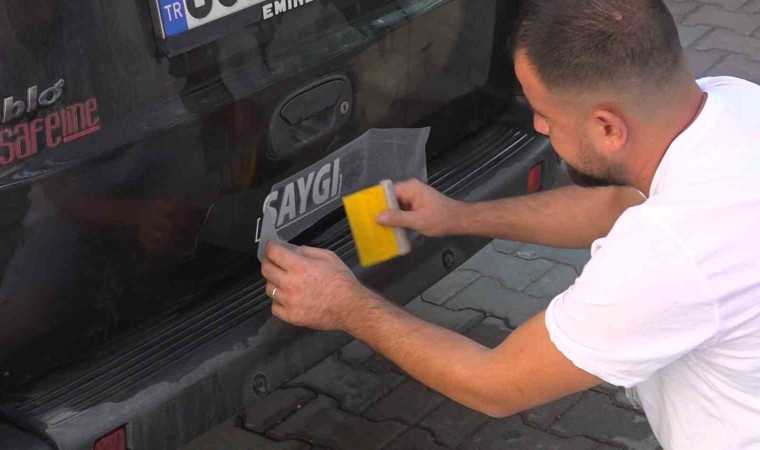 Amasya’nın Taşova ilçesinde trafikte kurallarına dikkat edilmesi amacıyla düzenlenen kampanyada araçların üzerine ’Saygı’ yazan etiketler yapıştırıldı.
