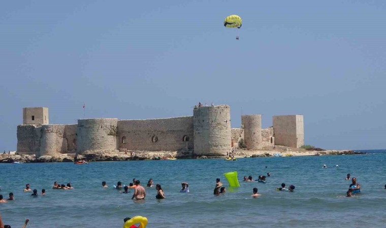 Akdeniz’e 321 kilometre kıyısı bulunan Mersin’de bayram tatilinin 9 gün olmasıyla birlikte sahiller dolup taştı. Unesco Dünya Kültür Mirası geçici listesinde yer alan Korykos Antik Kenti’nin en önemli parçası Kızkalesi başta olmak üzere 11 mavi bayraklı plaja tatilciler akın etti. Türkiye’nin dört bir tarafından kente gelen tatilciler, bunaltıcı sıcak hava nedeniyle denize girerek serinledi. Deniz suyunun 26 dereceler olduğu kentte hava sıcaklığının 35-36 derecelerde olduğu belirtildi. Daha çok ailelerin tercih ettiği Kızkalesi’nde bir çok tatilci deniz de vakit geçirdi, bazıları da çeşitli su aktivitelerine katılarak heyecanlı anlar yaşadı.