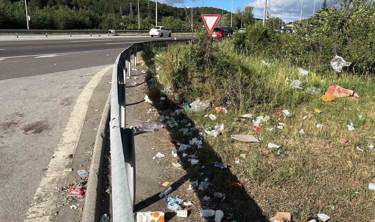 TEM Otoyolu’nun Bolu geçişinde yaklaşık iki gündür devam eden trafik yoğunluğu azalınca geriye tatilcilerin çöpleri kaldı.