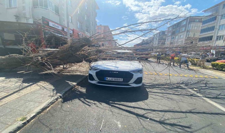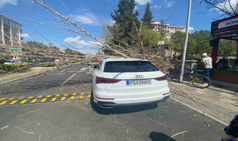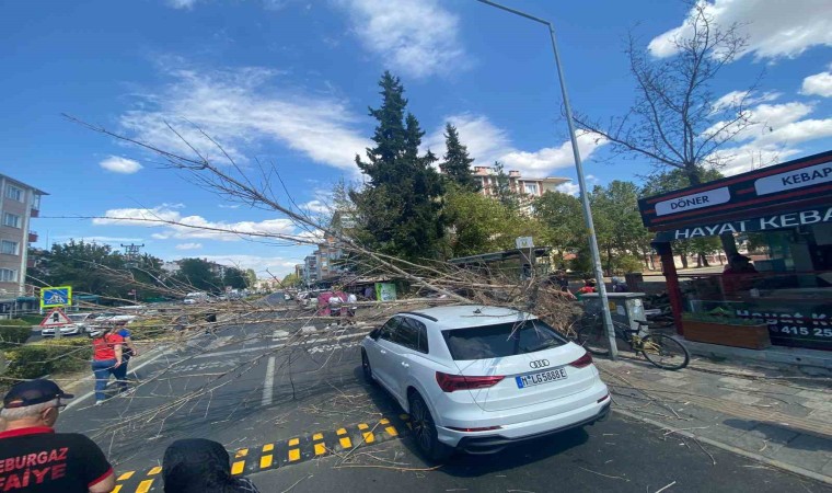 İstasyon Caddesi’nde öğlen saatlerinde Almanya’da yaşayan ve tatil için memleketi Lüleburgaz’a gelen gurbetçi Özlem K’nin kullandığı otomobilin üzerine ağaç devrildi. Köklerinin bir bölümünün çürüdüğü ve rüzgarın da etkisiyle devrilen ağaç, otomobilde maddi hasar meydana getirdi. İhbar üzerine olay yerine gelen Lüleburgaz İtfaiyesi ekipleri tarafından otomobil kurtarıldı.