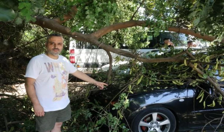 Tatile geldiği Antalya’da, otomobilinin üzerine ağaç devrildi
