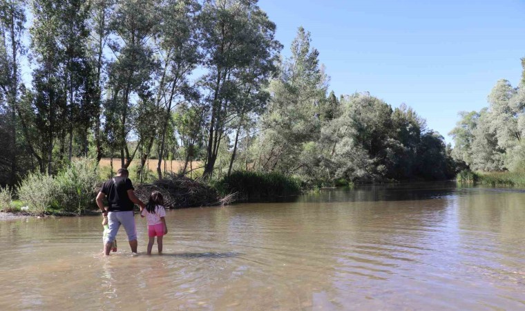 Sivas’ta tatile gidemeyen vatandaşlar Yıldız Irmağı’na akın ediyor, hem huzur buluyorlar hem de kavurucu sıcaklarda ırmak suyuyla ferahlıyorlar.
