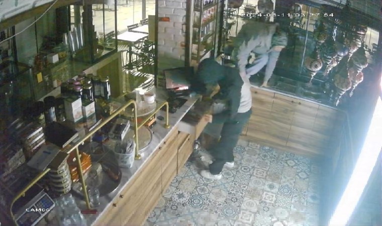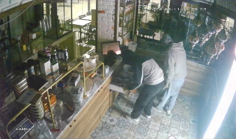 Öte yandan, hırsızlık anı saniye saniye güvenlik kamerası tarafından kaydedildi. Görüntülerde camdan dükkana giren 2 şahsın kasaya yöneldiği, ardından çekmecelerdeki paraları ceplerine doldurduğu görülüyor. Şahıslardan biri tezgah üzerindeki bağış kumbarasını da çalıyor.