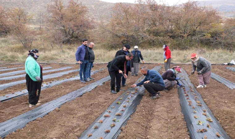 Toprak hazırlığının yapılmasının ardından malçlama sistemi kullanılarak toprakla buluşan 100 bin çilek fidesi önümüzdeki yıldan itibaren meyve vermeye başlayacak.