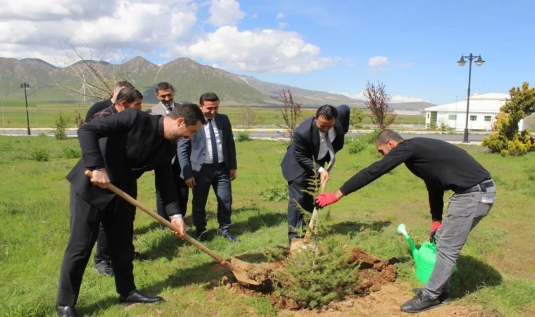 Elazığ Orman Bölge Müdürlüğünden getirtilen yüzlerce fidan, Tatvan Devlet Hastanesi bahçesinde toprakla buluşturuldu.