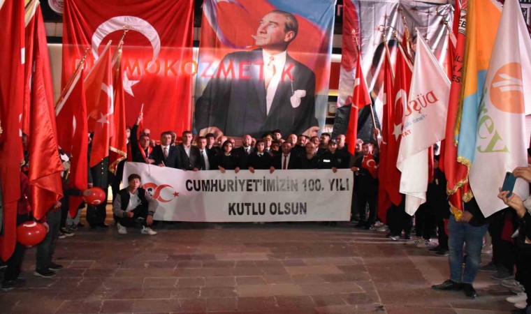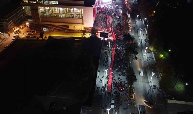 BİTLİS (İHA) – Bitlis’in Tatvan ilçesinde Cumhuriyet’in 100. yılı münasebetiyle 200 metrelik Türk bayrağıyla ‘Fener Alayı Yürüyüşü’ yapıldı.