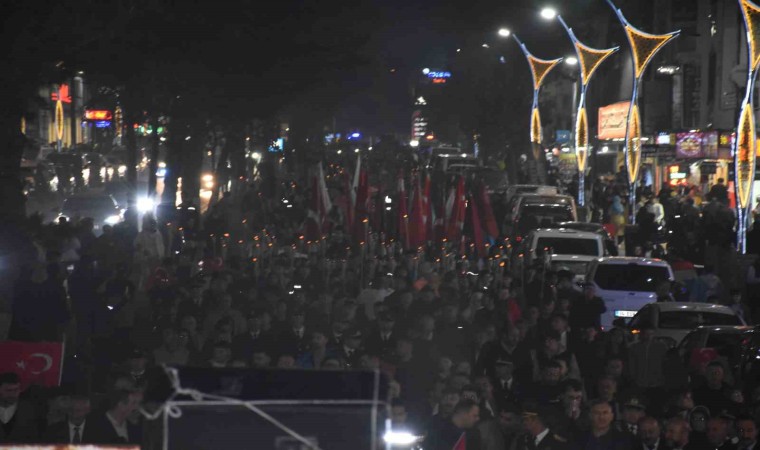 Bitlis’in Tatvan ilçesinde düzenlenen “Fener Alayı” programına katılan yaklaşık 3 bin kişi, 200 metre uzunluğundaki Türk bayrağı eşliğinde 2 kilometre yürüyüş yaptı.