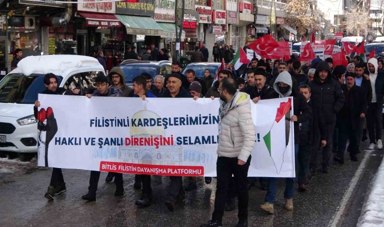 BİTLİS (İHA) – Bitlis’in Tatvan ilçesinde, İsrail’in saldırıları altındaki Gazze için ateşkes yürüyüşü yapıldı.