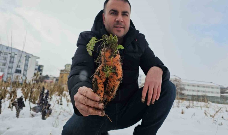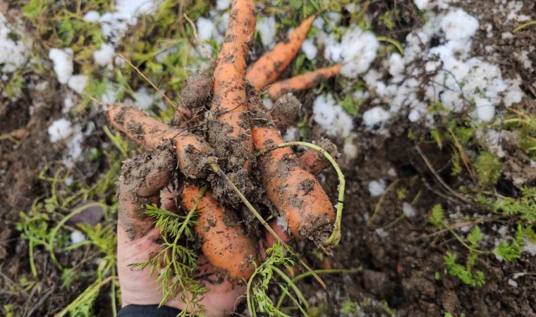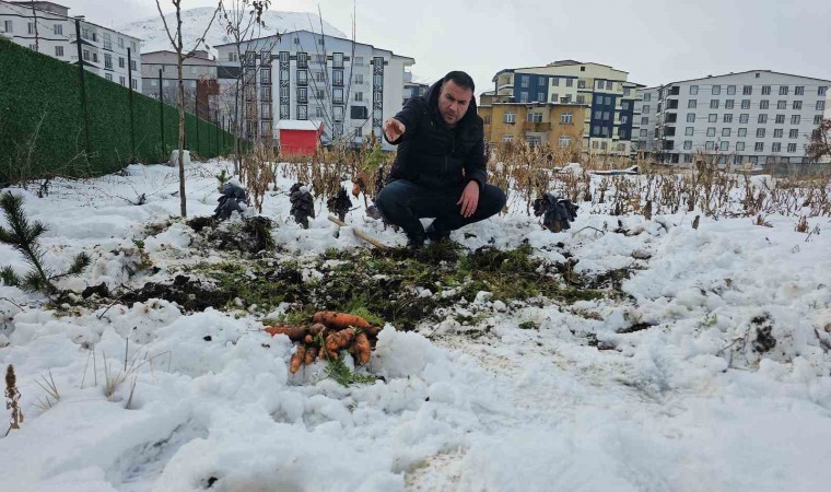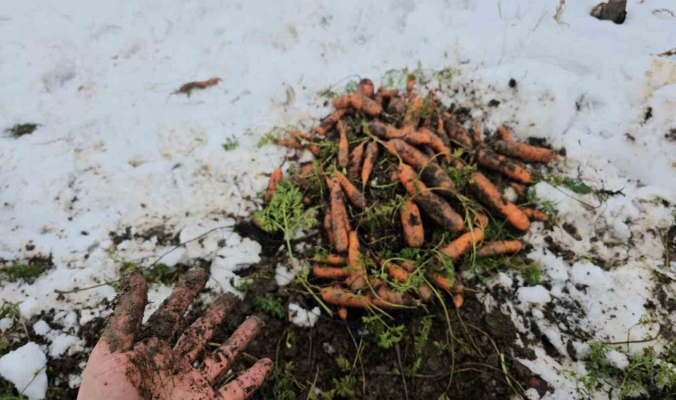 Bitlis’in Tatvan ilçesinde, karlar altında kalan havuçların hasadı yapıldı.