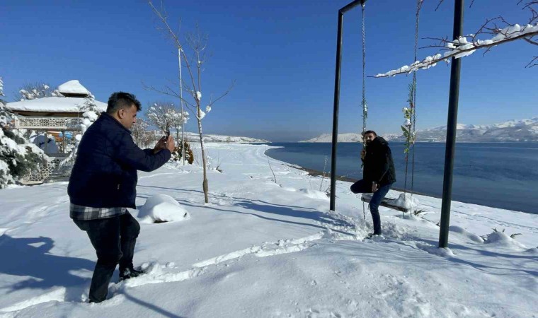 Bitlis’in Tatvan ilçesinde etkisini sürdüren kar yağışının ardından kartpostallık görüntüler ortaya çıktı.