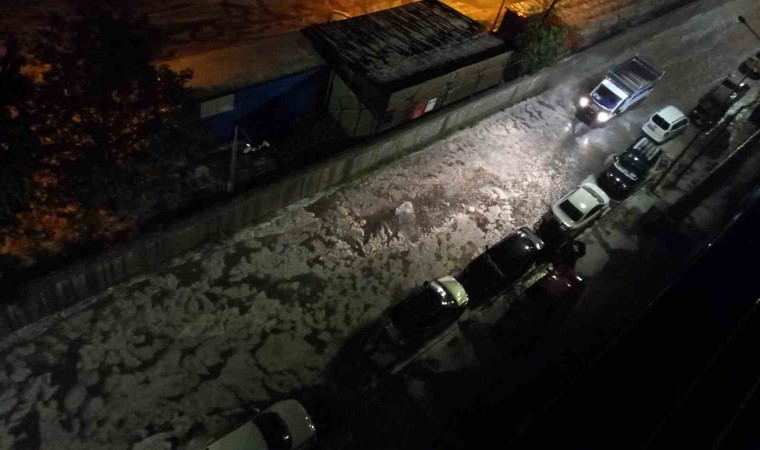 Bitlis’in Tatvan ilçesinde aniden bastıran dolu ve sağanak yağış hayatı olumsuz etkiledi.