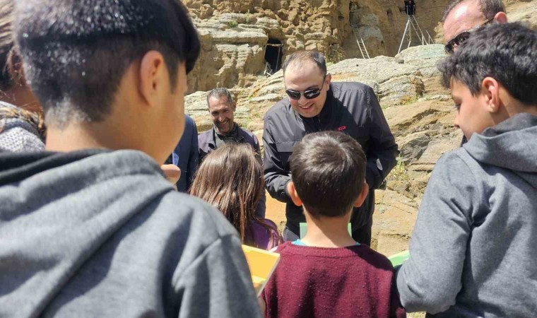 Krater ziyareti sonrası İncekaya mezrasını da ziyaret eden Kaymakam Demir, mezra sakinleriyle görüşüp, mezrada karşılaştığı çocuklara çeşitli hediyeler ve kitaplar verdiler.