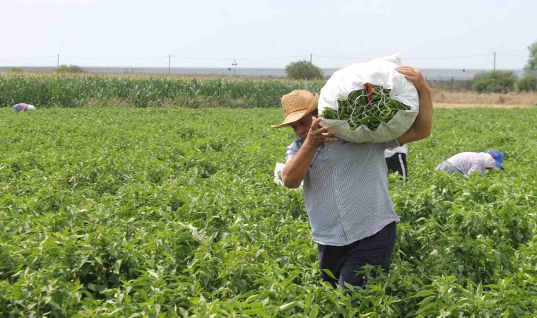 Edirne’de 40 dereceyi bulan sıcağın altında ciğerin can yoldaşı patentli ve tescilli Karaağaç biberinin hasadı 100 tarım işçisiyle başladı.