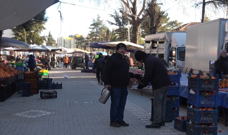 Pazar içerisinde çaycılar da çay servisi yaparak ısınmalarını sağlarken vatandaşlar da taze sebze ve meyve almak için pazarı tercih ediyor.