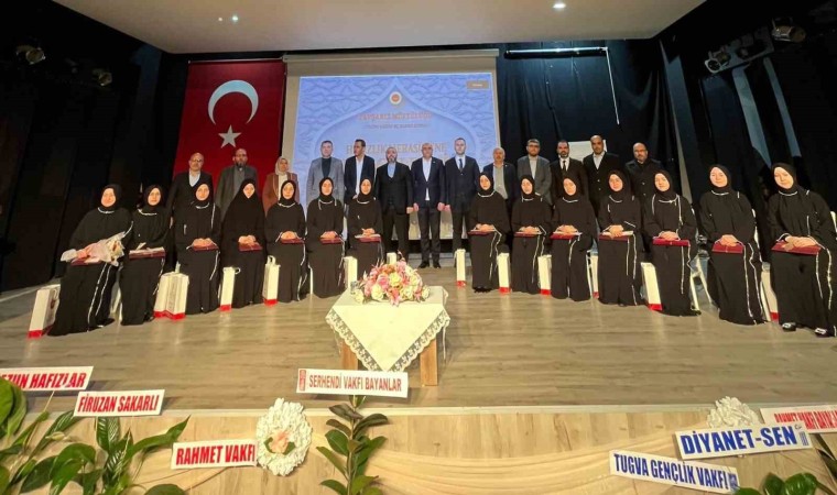Tavşanlı İlçe Müftülüğü’ne bağlı Fevziye Hanım Kız Kur’an Kursu’nda hafızlık eğitimini başarıyla tamamlayan 14 kız hafız için Tavşanlı Belediye Kültür Sarayı’nda özel bir tören düzenlendi. Törene, Diyanet İşleri Başkanlığı Başmüfettişi Mehmet Arslan, Tavşanlı Kaymakamı Hayrettin Baskın, Kütahya İl Müftüsü Dr. İrfan Açık, Tavşanlı Belediye Başkanı Ali Kemal Derin ve belediye yardımcıları katıldı. Ayrıca hafızların aileleri ve çok sayıda davetli de törene katıldı.
