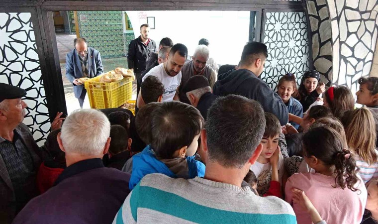 Çocuklar ve büyükler, camiye getirilen yiyecek ve içeceklerden eşit şekilde aldıktan sonra cami imamı Rasim Enes Sorgun tarafından dualar edildi.