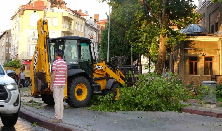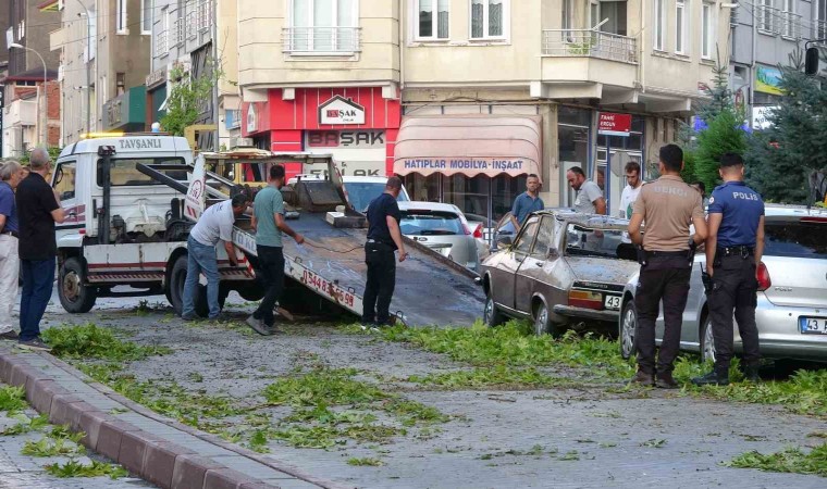 Kütahya’nın Tavşanlı ilçesinde asırlık çınar ağacının büyük bir dalı park halindeki 2 otomobilin üzerine düştü.