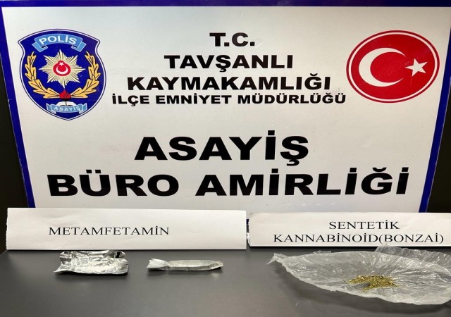 Kütahya'da, Domaniç-Tavşanlı yolunda gerçekleştirilen polis uygulamasında, durdurulan bir araçta yapılan aramada, 1.12 gram metamfetamin ve 1.76 gram bonzai bulundu. Tavşanlı İlçe Emniyet Müdürlüğü Narkotik Suçlarla Şube Müdürlüğü ekipleri, uyuşturucu madde taşıdıkları bilgisine ulaştıkları R. D. ve H. I. D. isimli şüpheli şahısların bulunduğu aracı tespit etti. Ardından, araç Domaniç-Tavşanlı yolunda durduruldu ve yapılan aramada metamfetamin ve bonzai ele geçirildi. Şüpheli şahıslar gözaltına alındı ve yasal işlem başlatıldı.