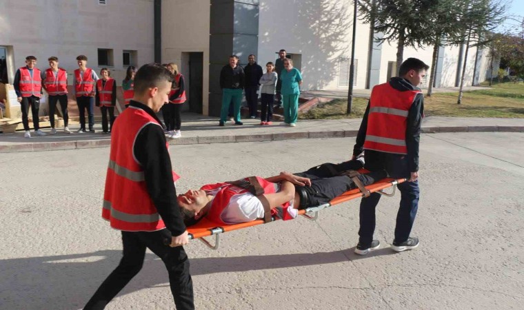 Senaryo gereği hastaların dışarıya taşınması, tatbikattan habersiz vatandaşlar tarafından heyecanla izlendi.