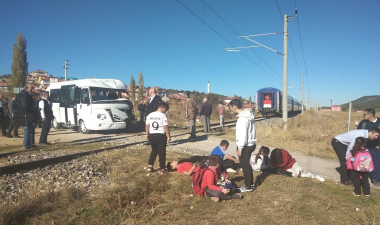 Kütahya’nın Tavşanlı ilçesinde öğrenci servisi, hemzemin geçitte yolcu treninin arka vagonuna çarptı. Kazada ölen ya da yaralanan olmadı.