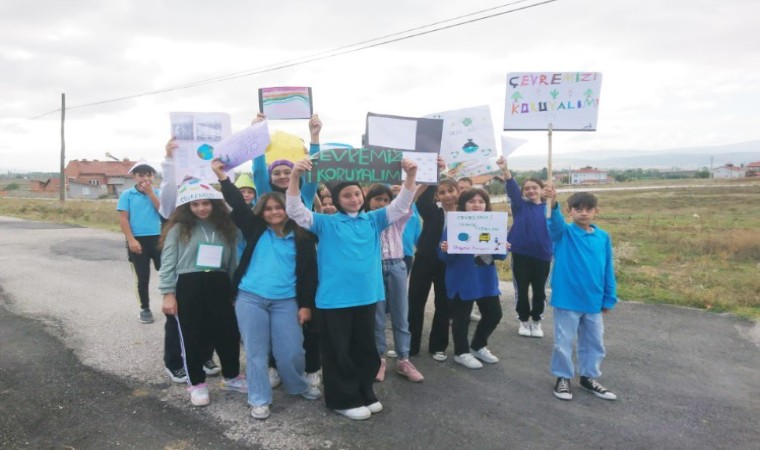 Kütahya’nın Tavşanlı ilçesinde İbrahim Düvenli Ortaokulu öğrencileri, çevre duyarlılığı için yürüyüş gerçekleştirdi.