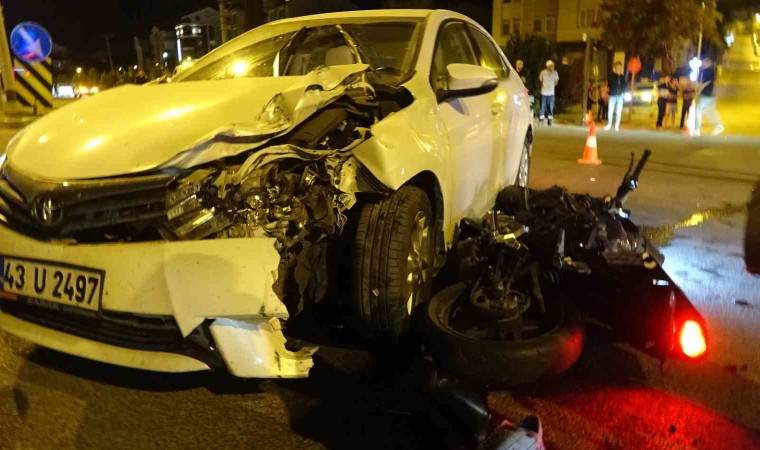 Edinilen bilgiler göre kaza, dün gece Durak Mahallesi çevreyolu Karaca ışıklı kavşakta meydana geldi. G.A. idaresindeki 43 U 2497 otomobil ile sürücüsü henüz tespit edilemeyen 43 ABM 397 plakalı motosiklet çarpıştı. Trafik kazasında otomobil sürücüsü G.A. (43), aynı araçta bulunan A.A. (18), A.A. (8) hafif yaralanırken, motosiklette bulunan ve sürücüsü henüz belli olmayan C.B. (20) ve E.U. (17) ağır yaralandı.