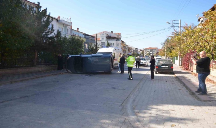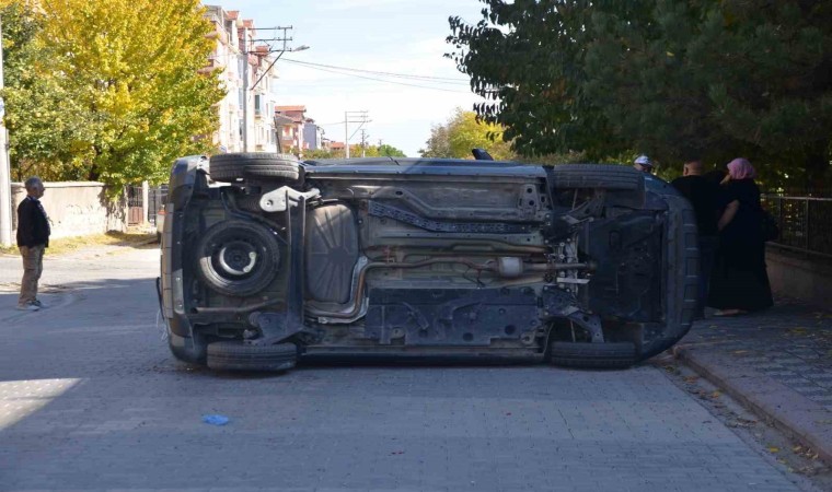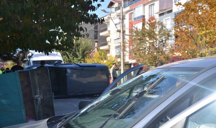 Yeni Mahalle Arslanbey Caddesi’nden şehir merkezine seyir halinde olan M.A. idaresindeki 43 AEZ 792 plakalı hafif ticari araç ile ara sokaktan ana caddeye çıkan Vildan Y. idaresindeki 25 DH 498 plakalı otomobilin çarpışması sonucu M.A. yönetimindeki araç çöp konteynerine çarparak takla attı.