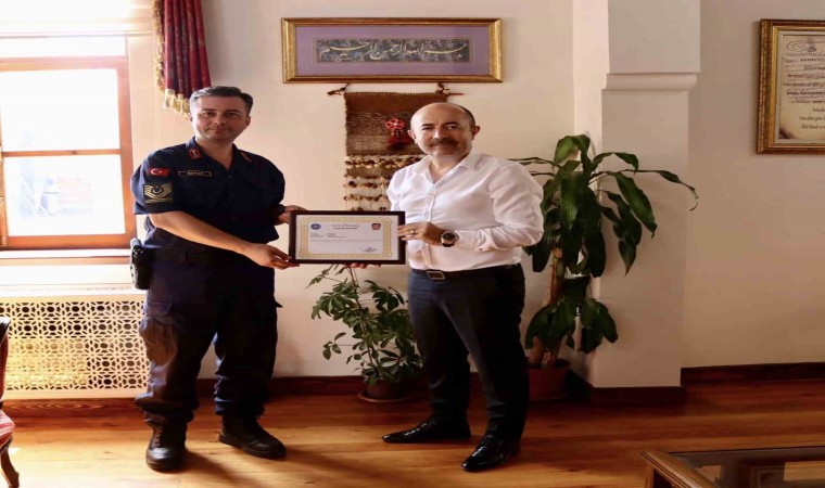 Muratlı Kaymakamı Bülent Uygur, emekli olan İlçe Tarım ve Orman Müdürü Ertekin Günaçtı ile tayini çıkan İlçe Müftüsü Uğur Emiroğlu ve İlçe Jandarma Komutanı Cihat Bayat’ı makamında kabul ederek, yaptıkları oldukları hizmetlerden dolayı başarı belgesi takdim etti. Kendilerine teşekkür eden Kaymakam Uygur, günün anısına birlikte hatıra fotoğrafı çektirdi.