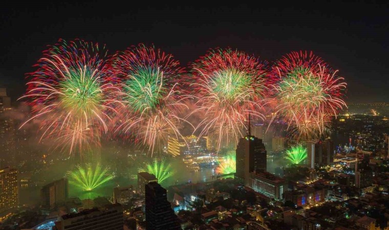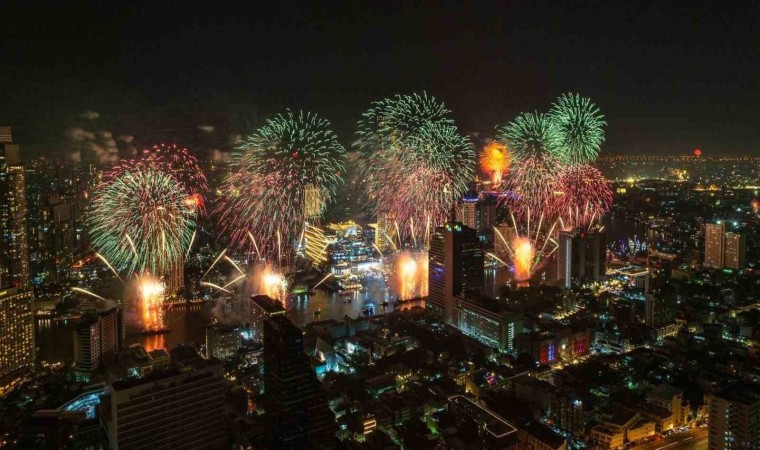 Saatler 00.00’ı gösterdiğinde ise Bangkok’un Chao Phraya Nehri’nden fırlatılan binlerce havai fişek, başkentin gökyüzünü renklendirdi. Bangkok Valiliği tarafından yapılan açıklamada, bu yıl başkentte gerçekleşen gösterilerde kullanılan havai fişeklerin doğa dostu olduğu açıklandı.