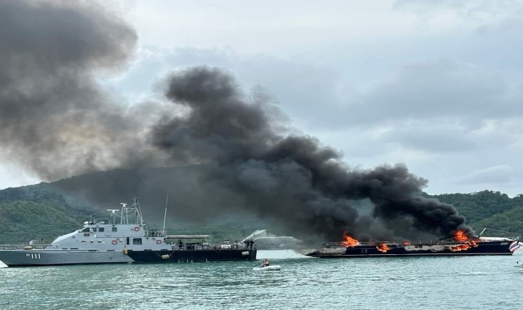 Tayland’ın ünlü tatil adası Phuket’te bir koya demir atan 34.2 metre uzunluğundaki lüks yat, çıkan yangın sonrası kullanılamaz hale geldi.