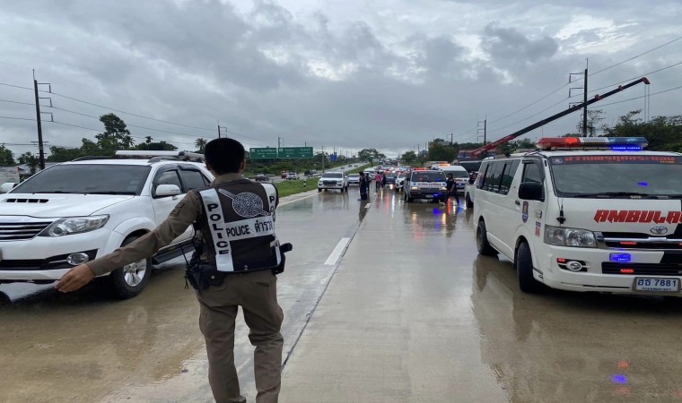 Tayland’da, 24 Çinli turistin bulunduğu otobüs ülkenin Pattaya kentine seyrettiği sırada devrildi. Kazanın şiddetli yağışın ardından yolun kayganlaşması sonucu yaşandığı ifade edilirken, otobüsün devrilmesiyle araçta sıkışan yolcuların kurtarıldığı aktarıldı. Çin’in Tayland Büyükelçiliği tarafından yapılan açıklamada ise, hastanede müdahale edilen ve tedavisi tamamlanan turistlerin taburcu edildiği, 2 turistin ise tedavisinin hastanede sürdüğü kaydedildi. Ayrıca, durumun büyükelçilik tarafından yakından takip edildiği bildirildi. ,