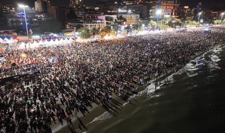 Tayland’ın ünlü eğlence ve tatil şehri Pattaya kenti 24-25 Kasım tarihlerinde havai fişek festivaline ev sahipliği yapıyor. Festivalin ilk gününde ziyaretçiler gösteriyi daha iyi izleyebilmek için plajda yerlerini saatler öncesinden alırken, havai fişek atışları denizin üzerine kurulmuş platformlardan yapıldı.