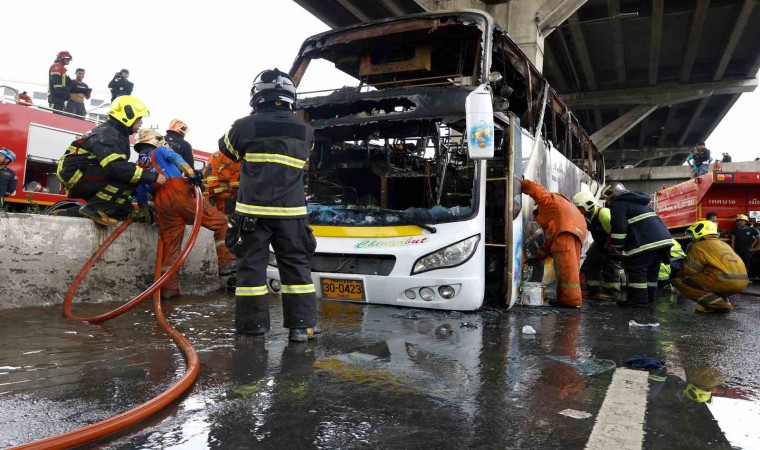 Tayland’ın Pathum Thani eyaletinde bir otoyolda bugün yerel saatle 12.20 sıralarında 38 anaokulu öğrencisi ve 6 öğretmenin bulunduğu okul servisi alev aldı. Yangında otobüsten kaçamayan 4-5 yaşlarındaki 16 çocuk ile 3 öğretmen hayatını kaybetti. Aralarında ağır yaralıların da bulunduğu çok sayıda öğrenci olay yerine gelen ekipler tarafından çevre hastanelere sevk edildi.