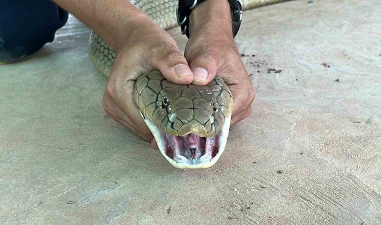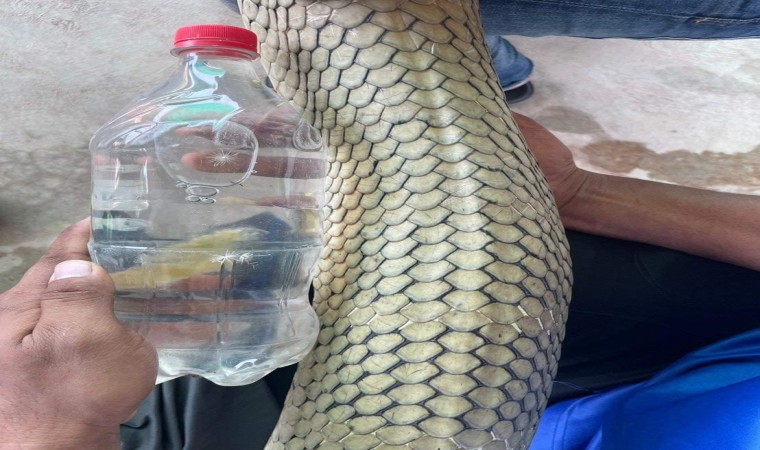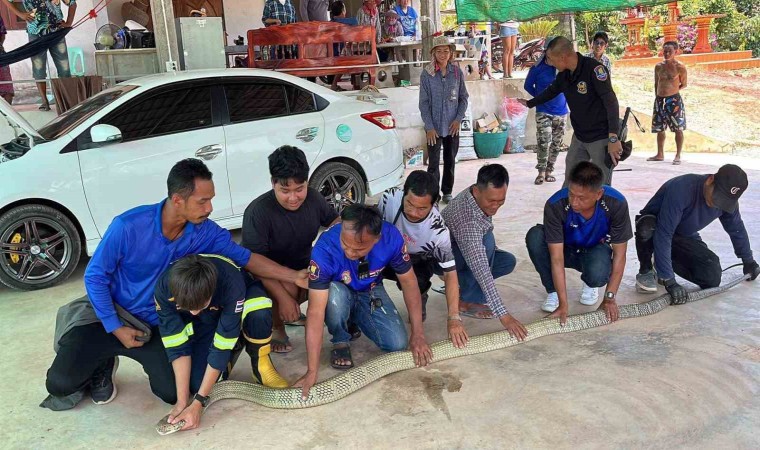 Tayland’da bir evin garajındaki otomobilin kaputunda, dünyanın en zehirli yılan türü olarak bilinen 16 kilogram ağırlığında "kral kobra" bulundu.