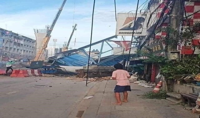 Tayland’ın başkenti Bangkok’un Lad Krabang bölgesinde bugün akşam saatlerinde üst yol bağlantı inşaatında 500 metrelik blok aniden çöktü. Olay anında alt yoldan geçen araçlardan bazıları beton bloğun altında kalırken, kazada 2 kişi hayatını kaybetti. Ölenlerden birinin kazanın yaşandığı inşaatta sorumlu mühendis olduğu öğrenildi. Yaralanan 13 kişi hastaneye kaldırılırken, çökmenin yaşandığı yol inceleme için tamamen trafiğe kapatıldı.