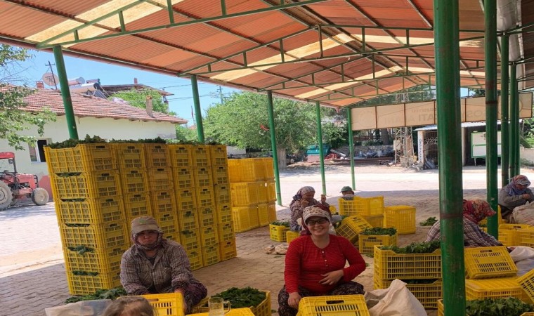 Sarıgöllü kadınlar sabahın erken saatlerinde başladıkları yaprak toplama işlemini saat 10.30’da bitirerek topladıkları yaprakları yaprak alım merkezinde nakit paraya satarak aile ekonomilerine de büyük katkı sağlıyor.
