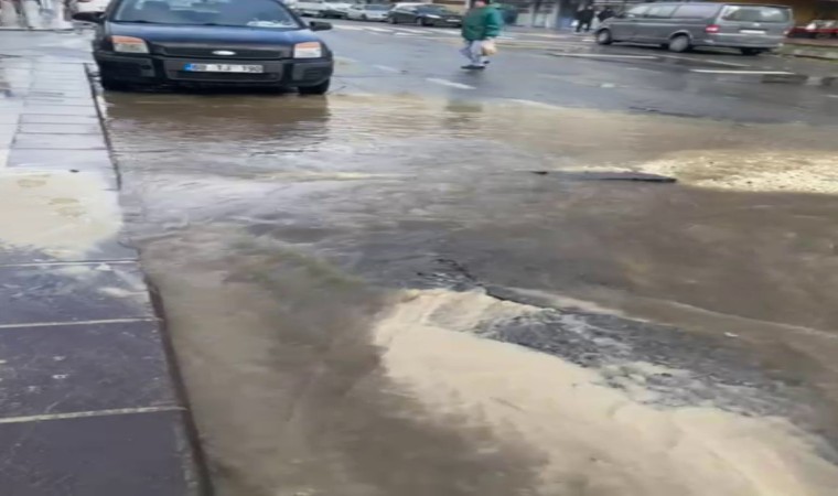 Tazyikli kanalizasyon suyu metrelerce yükseğe ulaşırken, o anlar ise cep telefonu kamerasına yansıdı. Olay nedeniyle mahallede kısa süreli su kesintisi yaşandı.
