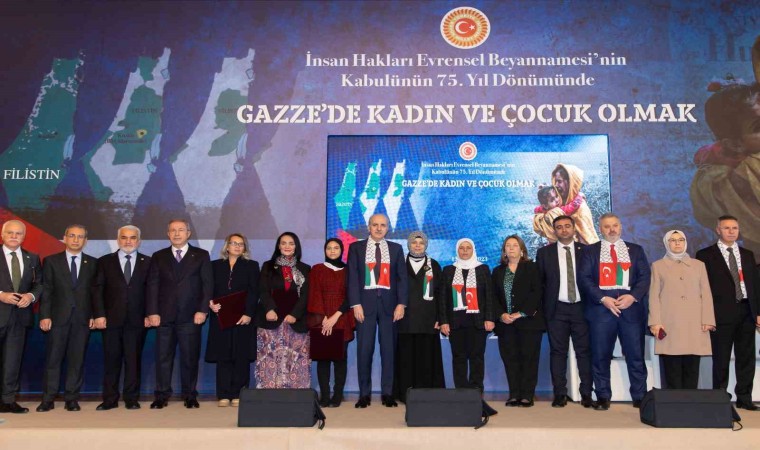 TBMM Başkanı Numan Kurtulmuş, Meclis Tören Salonunda düzenlenen İnsan Hakları Evrensel Beyannamesi’nin Kabulünün 75. Yıl Dönümünde Gazze’de Kadın ve Çocuk Olmak isimli panele katıldı. Kurtulmuş, panelden önce Filistin’de yaşanan zulmü gözler önüne sermek için açılan fotoğraf sergisini gezdi. Sergide, karton kutulara zımbalanmış fotoğrafları inceleyen Kurtulmuş, daha sonra ziyaretçilerin hissettiklerini paylaşması ve tarihe not düşmeleri için hazırlanan A4 kağıdına yazdığı mesajını imzaladı. Omzunda Türkiye ve Filistin bayrağı olan atkı taşıyan Kurtulmuş, bu mesajında, “İnsan Hakları Evrensel Beyannamesi’nin 75. yıl dönümünde, beyannamenin tüm maddelerini ayaklar altına alan, Gazze’deki insanlık dışı etnik temizliğin artık katliam boyutlarını aşarak soykırım haline gelmiş olmasını lanetliyoruz” ifadelerine yer verdi. Kurtulmuş’a sergiyi gezdiği esnada yanında başta AK Parti Kayseri Milletvekili Hulusi Akar olmak üzere diğer milletvekilleri eşlik etti.