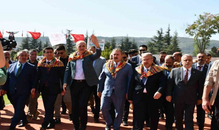 742. Söğüt Ertuğrul Gazi’yi Anma ve Yörük Şenlikleri’nin son günü TBMM Başkanı Numan Kurtulmuş, Büyük Birlik Partisi Genel Başkanı Mustafa Destici, MHP Genel Sekreteri İsmet Büyükataman, milletvekilleri Halil Eldemir, Yaşar Tüzün, Bilecik Valisi Şefik Aygöl ve siyasi parti temsilcilerin katılımı ile başladı. TBMM Başkanı Numan Kurtulmuş’u protokol üyelerinin karşılamasının ardından heyet Ertuğrul Gazi Türbesi’ne geçti. Kurtulmuş, burada Osmanlı Devleti’nin kurucusu Osman Bey’in babası Kayı Aşireti lideri Ertuğrul Gazi’nin türbesinde alp kıyafetli jandarma personelini selamlamasının ardından, aynı askerler tarafından ’Saygı Nöbeti’ değişimini izledi. Kurtulmuş, sonra Ertuğrul Gazi’nin manevi huzurunda dua etti ve tören alanına geçerek, halkı selamladı.