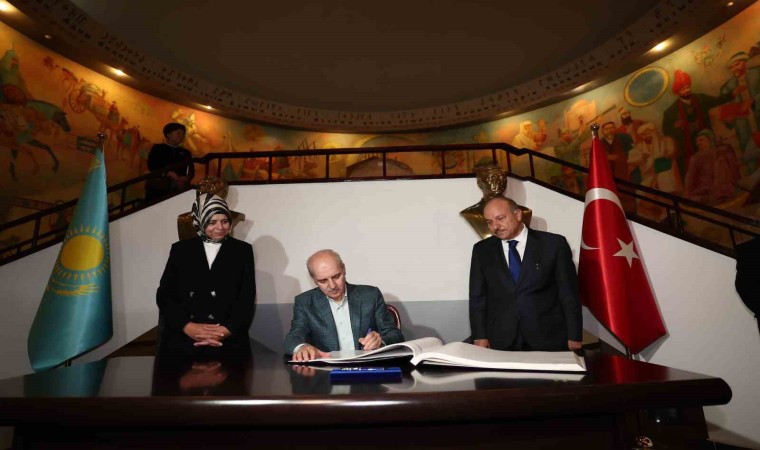 TBMM Başkanı Kurtulmuş, resmi ziyaret gerçekleştirdiği Kazakistan’da temaslarına devam ediyor. Kurtulmuş, Türkistan şehrinde bulunan Hoca Ahmet Yesevi Uluslararası Türk-Kazak Üniversitesi’nde öğrencilerle bir araya geldi. Kazakistan Meclisi Başkanı Yerlan Koşanov ile üniversite bünyesindeki Türk Dünyası Tarihi Panoramik Müzesi’nde incelemede bulunan Kurtulmuş, “21. Yüzyılda Türk Dünyasının Yeri” konferansında katılımcılara hitap etti.