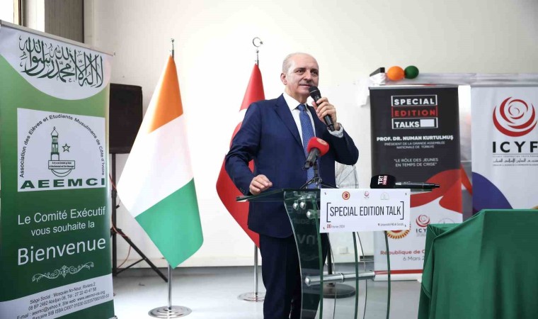 TBMM Başkanı Numan Kurtulmuş, İslam İşbirliği Parlamenter Asamblesi (İSİPAB) 18’inci Konferansı’na katılmak üzere geldiği Fildişi Sahili’nde temaslarına devam ediyor. Kurtulmuş, Abdijan şehrindeki Felix Houphouet-Boigny Üniversitesi’nde düzenlenen “Kriz Zamanlarında Gençlik Çalışmalarının Rolü” konulu İslam İşbirliği Gençlik Forumu programında üniversitedeki gençlere hitap etti.