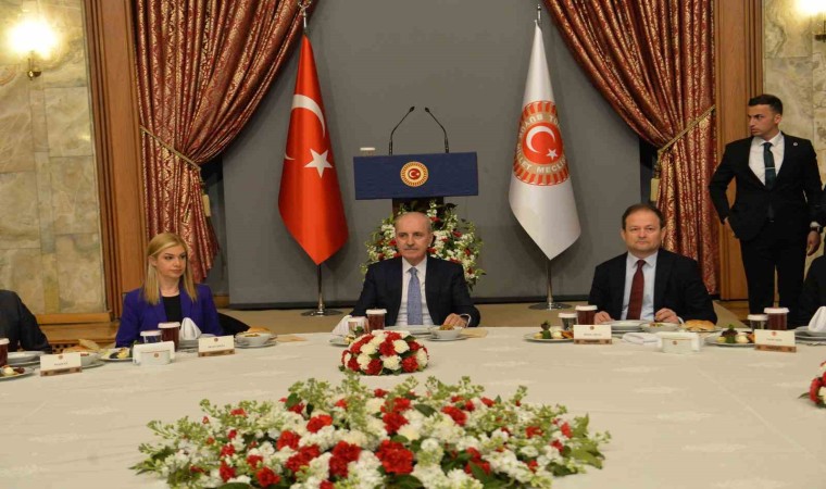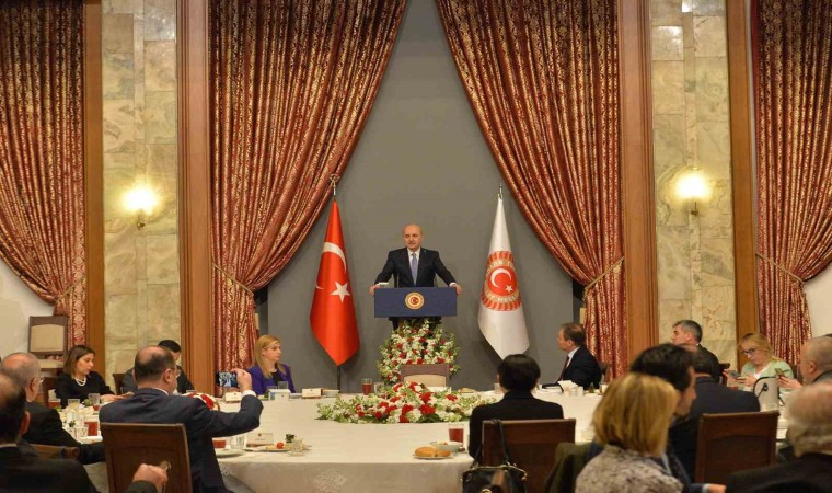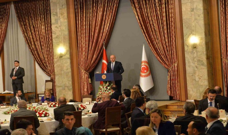 Kurtulmuş, gazetecilerle Tören Salonu’nda iftar yemeğinde buluştu. Kurtulmuş yemekten sonra yaptığı konuşmada, üç konuya değindi. TBMM Başkanı Kurtulmuş, İstiklal Marşı’nın TBMM’de kabul edildiğini hatırlatarak, "İnşallah İstiklal Marşı’nın vermiş olduğu milli hassasiyetlerimize sahip çıkma erdemine, her zaman sahip çıkarak yolumuza devam edeceğiz ve özellikle günümüzün türbülanslı bu uluslararası ilişkilerinin ortaya koyduğu özellikle bölgemizdeki sıkıntıların giderek yoğunlaştığı dönemde İstiklal Marşı’nın bize sağladığı bu ruh hali içerisinde dimdik ayakta duracağız. Ortak hedeflerimize doğru, Türkiye’yi cumhuriyetimizin ikinci asrında, Türkiye’nin yüzyılında hedefleriyle buluşturacak çalışmaları gerçekleştireceğiz. Onun için 103. yılında olduğumuz İstiklal Marşı’mızı her gün belki defalarca duyuyoruz, dinliyoruz ama her dinlediğimizde, bütün ruhumuzla hissederek ve oradaki ’korkma’ diye başlayan, cesaret veren, ilham veren o cümleleri hayatımıza rehber etmek, herhalde bizim milli hassasiyetlerimizi çoğaltmak ve sürdürmek bakımından en önemli gücümüzdür. En kuvvetli milli ortak değerimizdir” ifadelerini kullandı.