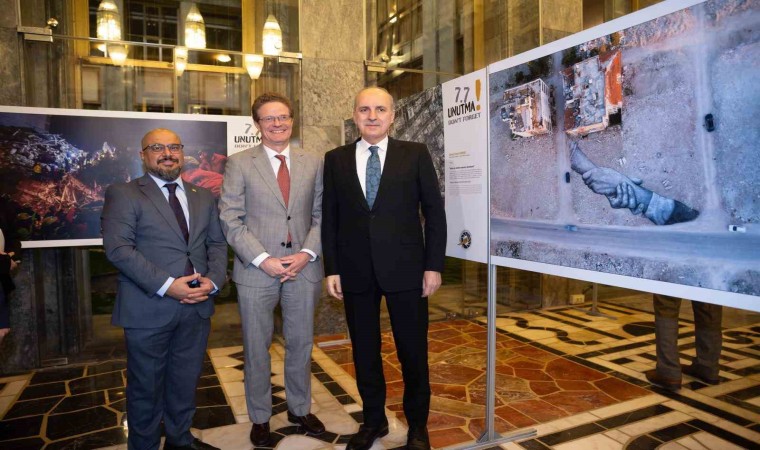 Türkiye Büyük Millet Meclisi Başkanı Numan Kurtulmuş, sergide bulunan deprem fotoğraflarına değinerek, "Yıkıntılar arasında çocuğunun elini tutan o babanın yüzündeki ifade, içinde kopan fırtınalar, bir taraftan hüzün, bir taraftan ayrılış hepsini, ya da enkazdan çıkarılmış, kurtarılmış bir yaralının yukarıya doğru zafer işareti yaparak gülümsemesi o yıkıntılar arasında bile hayatın devam ettiğini fevkalade önemli bir kareyi ortaya koyuyor. Bugün burada emeği olan tüm fotoğraf sanatçısı arkadaşları tebrik ediyorum. Oldukça güzel bir etkinliğe dernek olarak ev sahipliği yapıyorsunuz biz de mekansal olarak, TBMM olarak ev sahipliği yapıyoruz. Deprem bir doğal afetti, büyük bir yıkım oldu, büyük acılar yaşandı, basın mensuplarını da kaybettik. 1 yıl sonra insan eliyle gelen bir doğal afetten belki çok daha kuvvetli bir şekilde, daracık bir alanda insanları hayattan koparan bir saldırıyla karşı karşıya kaldık. Ortadoğu’da herkesi gözü önünde yok oluşa, bombalarla bir halkı ortadan kaldırmaya çalışıyorlar. 122 basın mensubu, Gazze’de 3 ayı biraz geçmiş bir süre içerisinde hayattan koparıldı. Saldırgan Siyonist rejim basın mensuplarını da ayırt etmeksizin öldürdü. Gazze’de yaşanan ve basın mensuplarına yapılan bu büyük saldırıları nefretle, lanetle kınadığımızı belirtmek isterim. Ölen 122 basın mensubunun hatırası önünde saygıyla eğiliyorum" diye konuştu.