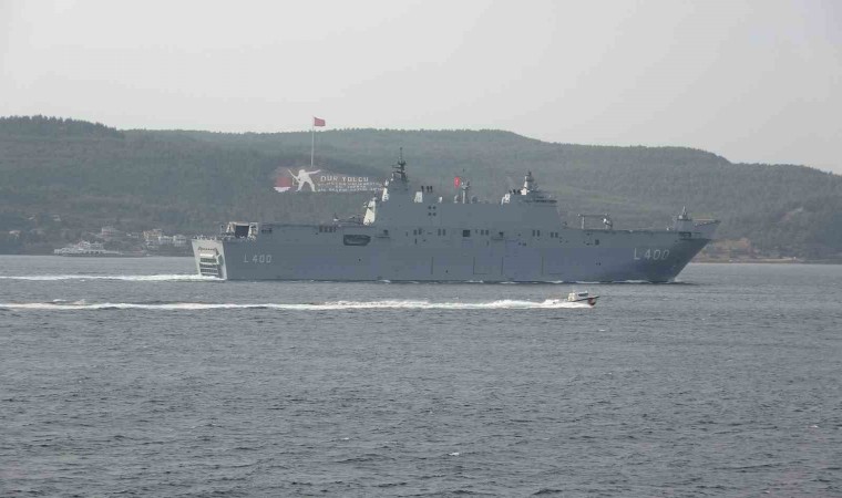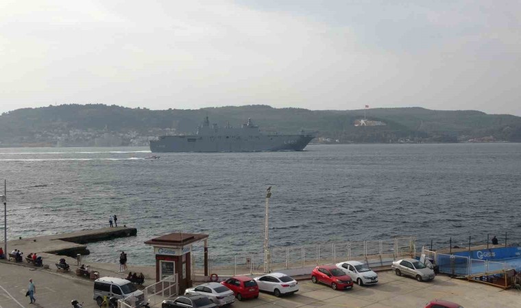 Ege Denizi’nden saat 15.00 sıralarında Çanakkale Boğazı’na giriş yapan dünyanın ilk silahlı insansız hava aracı (SİHA) gemisi TCG Anadolu, saat 16.10 sıralarında Çanakkale önlerinde oldu. Kilitbahir Kalesi ile Kilitbahir köyü dağında bulunan ‘Dur Yolcu’ yazısı önünden geçen ‘TCG Anadolu’ boğazın manevra yapılması en güç noktası olan Nara Burnu’nu döndü. Cumhuriyet’in 100’üncü yılı etkinlikleri çerçevesinde 27-28 Ekim 2023 tarihlerinde, 10.00-18.00 saatleri arasında İstanbul Sarayburnu’nda ziyarete açılacak olan dünyanın ilk silahlı insansız hava aracı (SİHA) gemisi ’TCG Anadolu’, Marmara Denizi’ne doğru yol aldı. ‘TCG Anadolu’ gemisine F-495 borda numaralı ‘TCG Gediz’ fırkateyni ve Sahil Güvenlik botu refakat etti.