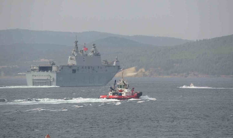 Cumhuriyet’in 100’üncü yılı etkinlikleri çerçevesinde 27-28 Ekim 2023 tarihlerinde, 10.00-18.00 saatleri arasında İstanbul Sarayburnu’nda ziyarete açılacak olan dünyanın ilk silahlı insansız hava aracı (SİHA) gemisi ’TCG Anadolu’, Çanakkale Boğazı’ndan geçti.