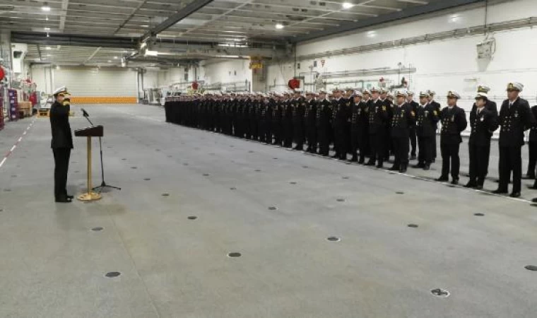 Milli Savunma Bakanlığı’na bağlı TCG Anadolu gemisinde 29 Ekim Cumhuriyet Bayramı töreni düzenlendi. Gemideki törene üst düzey rütbeli askerler ile gemi personeli katıldı. Saygı duruşunda bulunulması ve İstiklal Marşı'nın okunmasıyla başlayan törende, Milli Savunma Bakanı Yaşar Güler’in mesajı okundu. Tören Yüzüncü Yıl Marşı’nın okunmasıyla son buldu. (DHA)