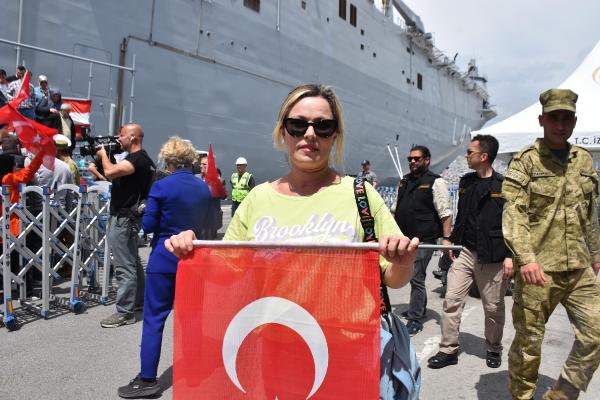 Ailesiyle birlikte gemiyi ziyaret eden Gülcan Kalındamar, "Çok güzeldi. Teşekkür ederiz. Milli helikopterlerimizi mutlulukla sevinç içinde gördük" diye konuştu.
