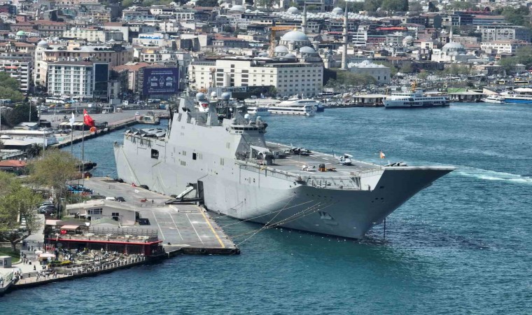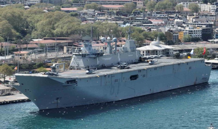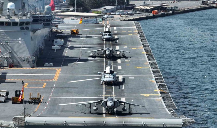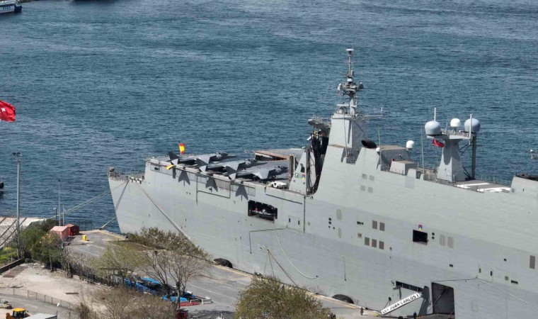 İspanya Donanması’nda görevli stratejik önemi olan 231 metre uzunluğunda, 27 bin groston ağırlığındaki çok amaçlı amfibi hücum gemisi İstanbul’a geldi. Sahil Güvenlik ve Kıyı Emniyeti’ gemilerinin eşlik ettiği Juan Carlos I (L 61) amfibi hücum gemisi Sarayburnu Limanı’na demirledi. Yanından geçen yolcu gemileri ile birlikte havadan görüntülenen geminin büyüklüğü gözler önüne serildi. Türk Deniz Kuvvetlerinin TGC Anadolu gemisi ile aynı sınıftan olan İspanya’nın amfibi gemisi, vatandaşlar tarafından da büyük ilgi gördü. 202 metre uzunluğunda uçuş güvertesine sahip olan gemide orta ölçekli helikopterler için 8 pist, ağır helikopterler için ise 4 pisti bulunuyor. Gemi güvertesindeki savaş uçakları ve dizilen helikopterler ise havadan çekilen görüntülere yansıdı.