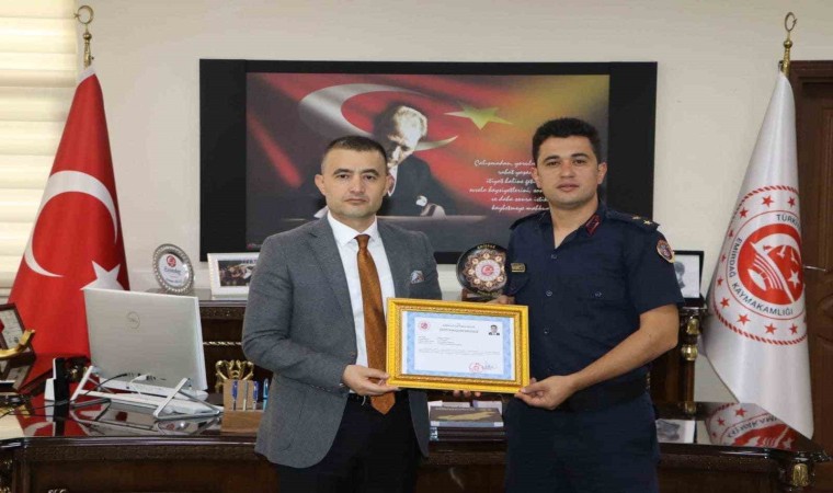 Bilecik’e tayini çıkan Afyonkarahisar Emirdağ İlçe Jandarma Komutanı Mehmet Teberci’ye, Kaymakam Osman Bileci tarafından üstün başarı belgesi verildi.